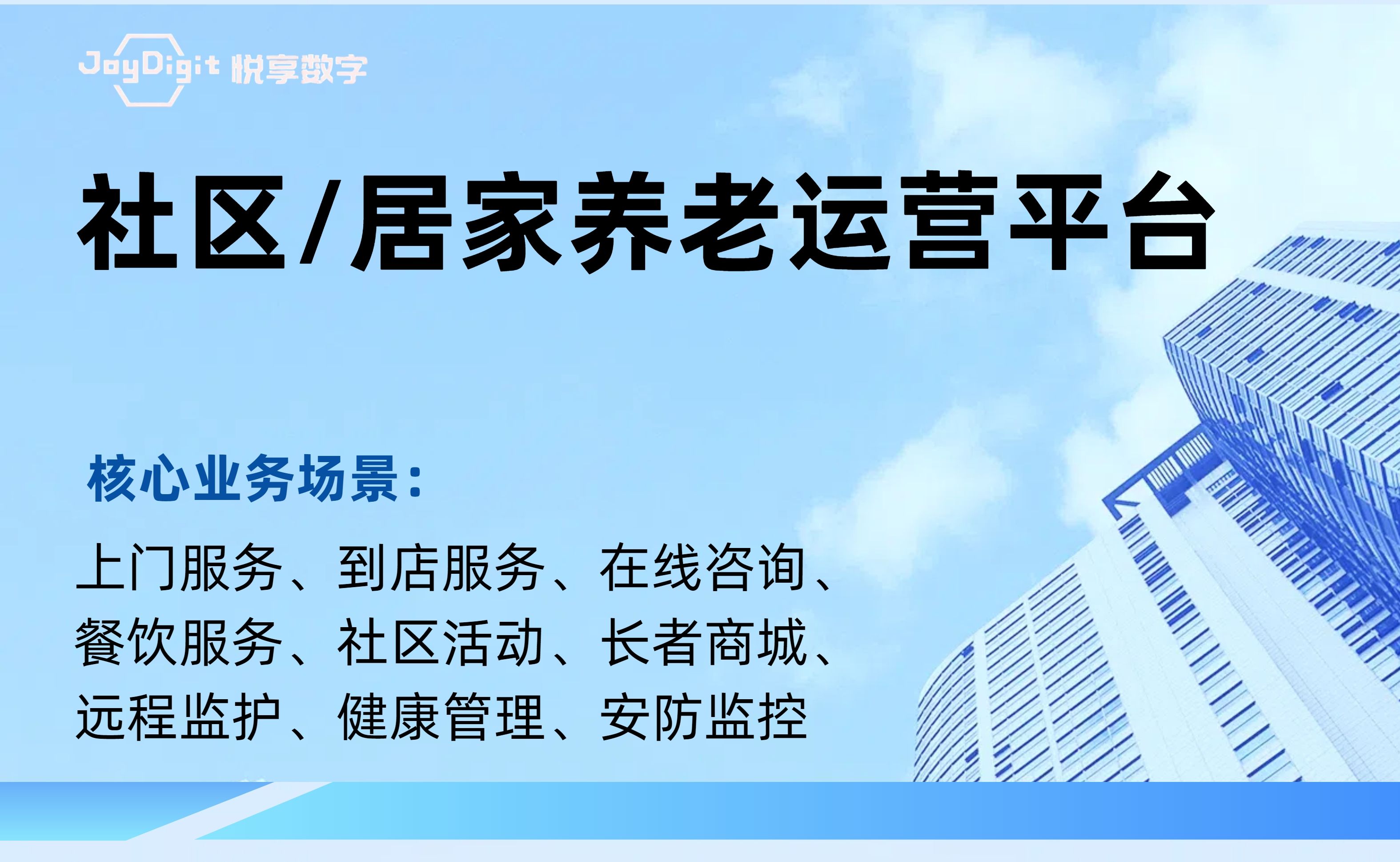北京悅享數(shù)字科技有限公司(JoyDigit?,簡(jiǎn)稱悅享數(shù)字?)作為養(yǎng)老行業(yè)數(shù)字化轉(zhuǎn)型的引領(lǐng)者,以“數(shù)字驅(qū)動(dòng)健康?,智慧賦能養(yǎng)老?”為愿景,以iSpeed作為養(yǎng)老行業(yè)數(shù)字化轉(zhuǎn)型的標(biāo)準(zhǔn),通過(guò)融合大數(shù)據(jù)、人工智能、物聯(lián)網(wǎng)、區(qū)塊鏈和移動(dòng)互聯(lián)等創(chuàng)新技術(shù),打造了領(lǐng)先的數(shù)字化養(yǎng)老解決方案-悅享養(yǎng)老數(shù)字化平臺(tái)(JoyDigit NexSight Platform),端到端覆蓋了數(shù)字化渠道與銷(xiāo)售、業(yè)務(wù)流程標(biāo)準(zhǔn)化與智...